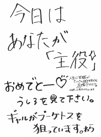最後に、結婚式の式場やドレス選びなどに迷っている花嫁への直筆メッセージをお願いしました(上がはるさん、下が荒川さん)。はるさんは「一生の想い出、最高の日になると思うので、どれだけ時間をかけてもいいし、その日だけはわがままでいいと思います。自分の納得いくまで悩んで。その日はあなたが主役なので」と語ってくれました。