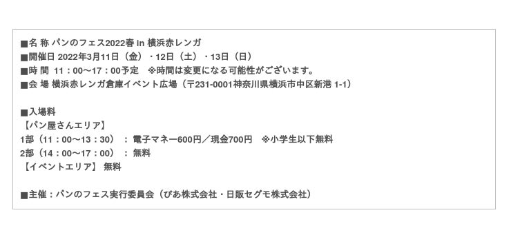 「パンのフェス2022春 in 横浜赤レンガ」チケット