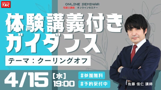 宅建士試験対策講座を展開しているTAC株式会社(東京都千代田区)は、4/15(水)19:00より宅建試験に説明する無料オンラインセミナーを開催します。