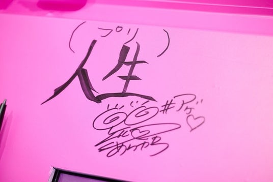 超“プリ” エンジョイオフィサーとして、「平成プリパニック」の画像送信ブースにプリ愛メッセージを書き込み