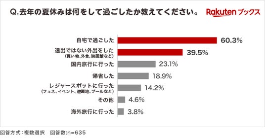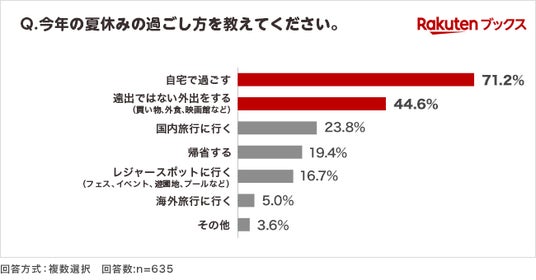 楽天グループ株式会社が運営するオンライン書店「楽天ブックス」(以下「楽天ブックス」)は、2024年7月5日(金)~7月11日(木)の期間、Z世代の社会人を中心とした22歳~28歳の「楽天ブックス」ユーザー635名を対象に実施した「2024年 夏休みの過ごし方」に関するアンケート調査結果を発表しました。