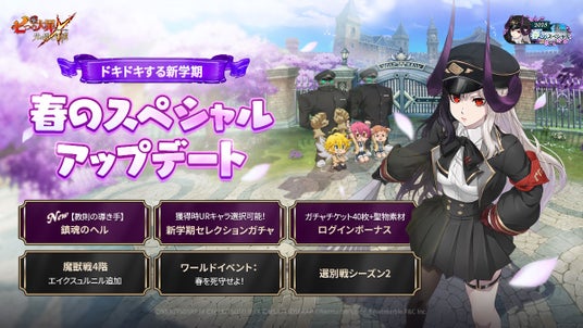 ネットマーブルは、スマートフォン向けシネマティックアドベンチャーRPG『七つの大罪 ~光と闇の交戦(ひかりとやみのグランドクロス)~』(略称:グラクロ)において、3月27日(木)に、新キャラ【教則の導き手】鎮魂のヘルの登場や学園風コスチュームを受け取ることができるイベントを開催するゲームのアップデートを実施いたしました。