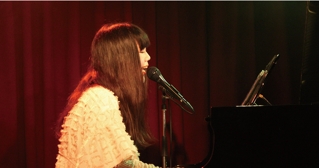 イベントのラストを務めたのは、この日唯一ピアノの弾き語りを披露したおおきあさみ。晴れやかな歌声が心地よいミディアムバラード「星になるなら」でライブがスタートし、2曲目の心弾むキラキラしたポップチューン「青」へ。AWAのLOUNGEを聴きながら会場へ来た話から、冬に歌うべきと思っていままで解禁してなかったと語った「淡い夢」を披露。続いて、歌謡曲的なムードとサビの“ぱっぱらぱ”が耳に残る「ぱっぱらぱ」をパフォーマンス。会場のグランドピアノが弾ける喜びを語った後に、ポップの中にも儚さが表現された「僕らのミュージアム」でイベントのラスト締めくくった。
