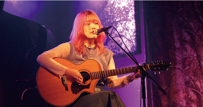 3番手に登場したのは、花を見て感じたことや香りをきっかけに感じたことを歌にするvessy。1曲目の「snowy waltz」を披露し、ゆったりとしたギターの音色が心地よい「春の匂いがする」、「ふたりのbouquet」を立て続けにパフォーマンス。歌声とは違ったキュートな声でMCを披露し、前の3曲とはまた違った歌声を聴かせてくれた「霧花使」を歌い、vessyの魅力がつまった「海がひろがるとき」をラストに披露し自身のライブを完走した。