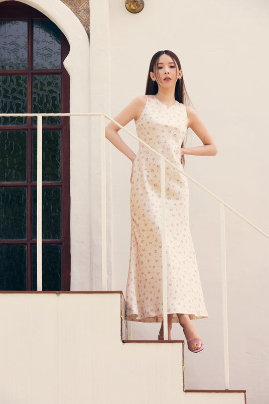 なめらかな肌触りのサテン生地を使ったワンピースは2種類を用意。シルエットや落ち感がキレイに見えるように仕上げました。小花柄はかわいらしく、無地は大人っぽい。ともにエレガントすぎず、カジュアルにも着こなせる1枚です。