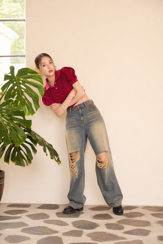 今季はポロシャツを着たい気分。でも、普通じゃない、個性があるデザインがいい。そこで制作したのがこの1枚。ガーリーな要素をプラスしながら、丈を短くしてちょっぴりヤンチャ感を。デニムもスカートも、相性よく合わせられます。
