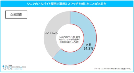 アルバイトでシニアを雇用したことがある企業の採用担当者のうち、「雇用のミスマッチを経験したことがある」とした割合は61.8%となった。
