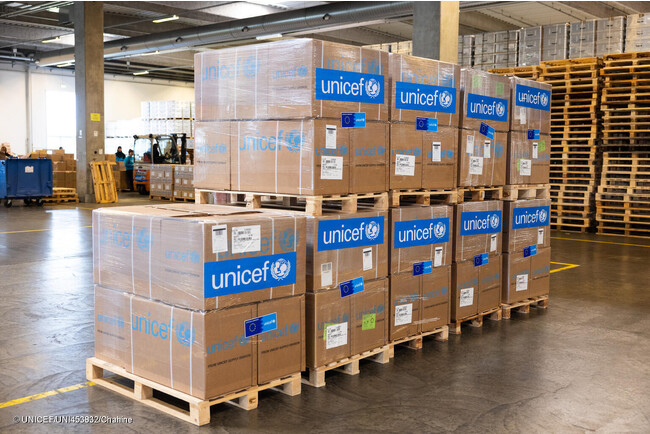 現地の状況が刻々と変化している中、ユニセフはエジプトに設置している事務所とも連携し、ガザ地区とエジプトの間の検問所より支援物資が搬入できるようになった際には、少なくとも15万人を支援できるよう、エジプトに命を守る支援物資を事前配備しています。現在のところ、以下の物資がガザ地区向けにエジプトに配備されているか、または配備される予定です。