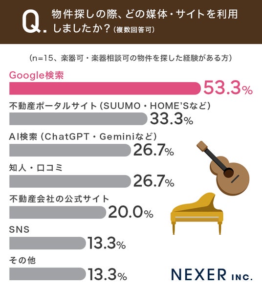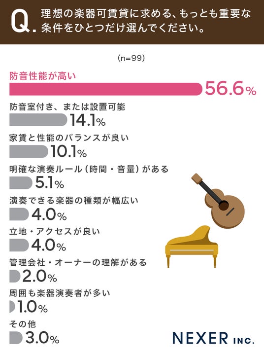 株式会社NEXER・楽器可賃貸の実態と理想の住まい選びに関する調査