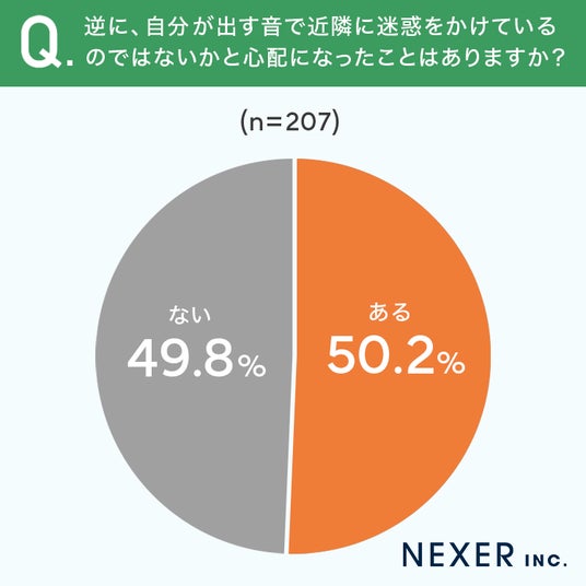 ■50.2%が「自分の出す音が迷惑になっていないか心配したことがある」と回答