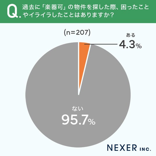 ■4.3%が「楽器可」の物件探しで「困った経験がある」と回答