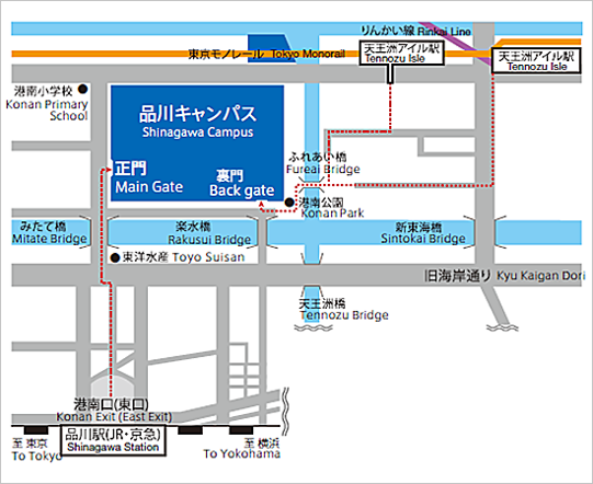 JR線・京浜急行線 品川駅港南口(東口)から徒歩約10分