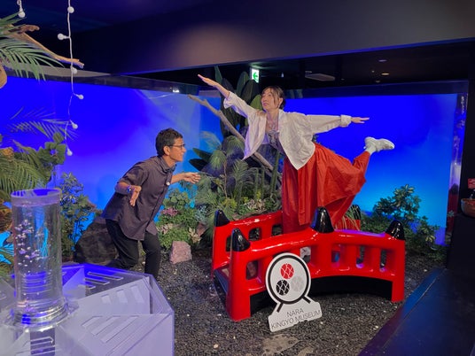 魅惑の観光スポット「NARA KINGYO MUSEUM」で映えまくる。10倍サイズの水槽を再現した「人間水槽」では、金魚になりきって写真撮影も!