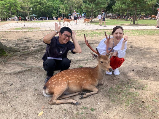 奈良公園でまず鹿のえさやり&鹿との記念撮影に挑戦。しかし人間の思うようには動いてくれない鹿に須田は大苦戦。SNS好きの須田が鹿に掛けた思わぬ一言とは…?