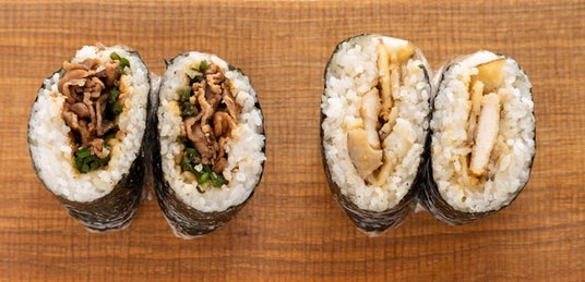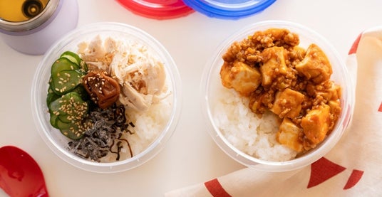 右:「厚揚げと豚ひき肉のチリソース丼」