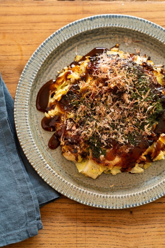 「長いもともちのお好み焼き」いも&もちのボリュームで満足感たっぷり♪