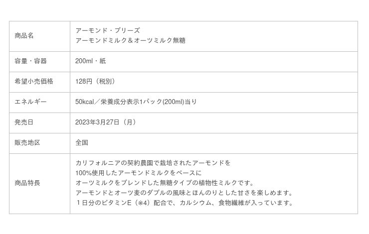 サッポロホールディングス(株)のグループ企業である、ポッカサッポロフード&ビバレッジ株式会社(代表取締役社長:時松浩、本社:愛知県名古屋市)は、アーモンド・ブリーズ(※1)ブランドより、2種類の植物性素材を掛け合わせた植物性ミルク「アーモンド・ブリーズ アーモンドミルク&オーツミルク無糖」 「アーモンド・ブリーズ アーモンドミルク&ココナッツミルク無糖」を2023年3月27日(月)より全国で新発売します。