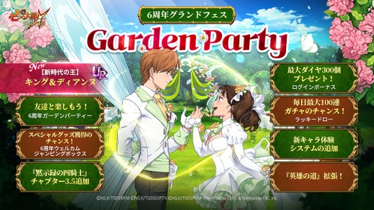 6月4日に迎える『グラクロ』6周年を記念し、本アップデートより、様々な豪華イベントが盛りだくさんの6周年記念「ガーデンパーティー」を開催いたします。