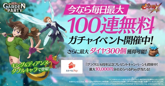 『グラクロ』6周年グランドフェス ガーデンパーティーの開催を記念して、期間中合計7,000名様に、最大1万円分のえらべるPay(R)️がその場で当たるキャンペーンを開催いたします。