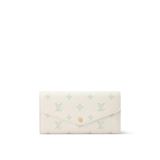 ミルキーホワイトとグリーンのバイカラーが際立つエレガントな「ポルトフォイユ・サラ」。メゾンを象徴するモノグラム・アンプラント レザーを使用し、ゴールドカラーのスナップボタンで洗練された印象に仕上げました。内装には紙幣やコイン、16のカードを収納できる複数のコンパートメントを備えています。