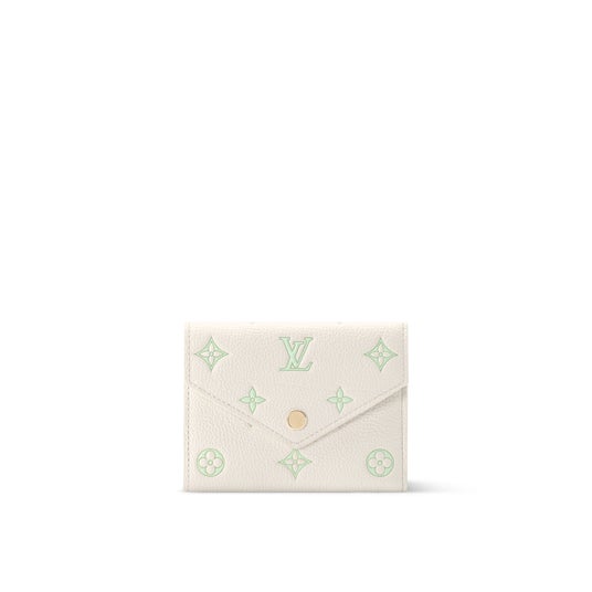 ミルキーホワイトの色合いで表現された「ポルトフォイユ・ヴィクトリーヌ」。デイタイムからイブニングまで活躍する、モダンなバイカラーの色合いが特徴です。メゾンを象徴するモノグラム・アンプラント レザーに、明るいゴールドカラーの金具で洗練された印象を添えました。内装にはコインや紙幣を収納できる複数のポケットに加え、6つのカードスロットを備えています。