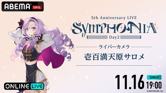 新しい未来のテレビ「ABEMA(アベマ)」は、2025年11月15日(土)、11月16日(日)のそれぞれ19時より、大人気VTuber/バーチャルライバーグループ「にじさんじ」が2023年に開催した5周年記念ライブ『にじさんじ 5th Anniversary LIVE 「SYMPHONIA」』を全編無料放送するほか、「ABEMA PPV(アベマ ペイパービュー)」にて、1人のライバーを追尾できるカメラ映像「ライバーカメラ」を全楽曲放送することを決定いたしました。