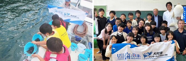 一般社団法人海と日本プロジェクトinながさきは、小学校、幼稚園を対象に、2023年7月~11月の期間(全7回)にて、大村湾の環境や海の生き物について学ぶ出前授業、現役漁師と行う稚ナマコ種苗・カサゴ稚魚放流体験を開催いたしました。大村湾の主要水産物であるナマコや海の生き物を通じて子どもたちが地元大村湾への関心を深め、海の環境問題や海の魅力を知ることで、自ずと「大村湾を守りたい」と感じる心を育むことを目的としています。