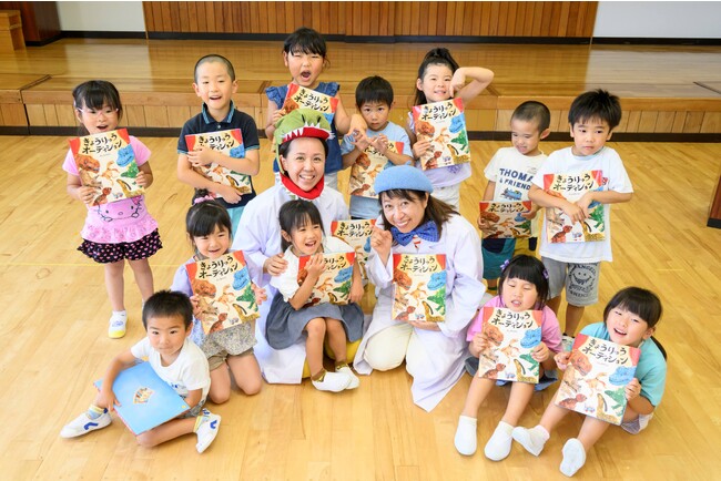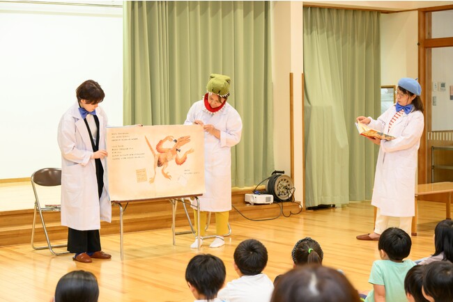 さらに、参加した園児全員に1冊ずつ絵本『きょうりゅうオーディション』を寄贈。各家庭で、絵本を通じた安らぎのひとときを過ごしてほしいと願っています。