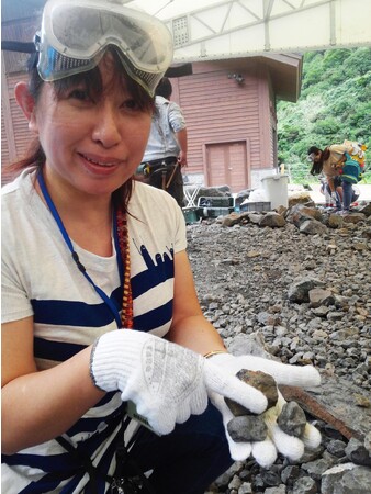 福井県立恐竜博物館で化石を発掘するたしろ氏