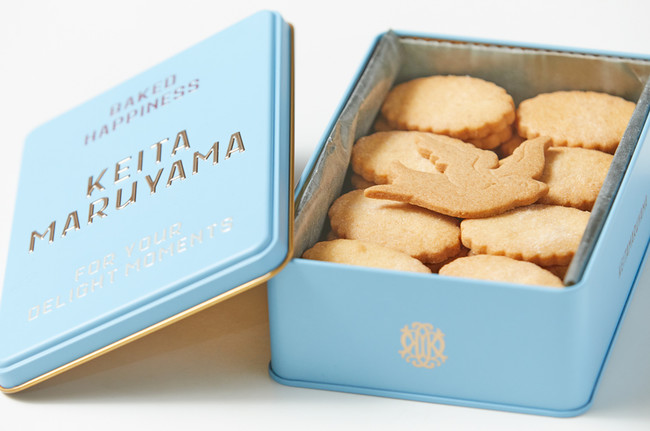 KEITA MARUYAMAらしいオリジナル缶。サブレ・ナチュールはバタークッキーにレモン風味で爽やかさを添えたいくら食べても飽きない味。小鳥の形のサブレ・オ・ゼピスは、シナモンやナツメグなどのスパイス香クッキー、見た目にも味覚にもアクセントを添えています。