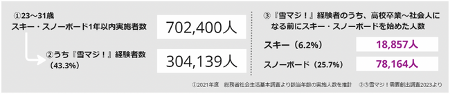※23~31歳スキー・スノーボード1年以内実施者数は社会生活基本調査の2020-21シーズンのデータを用いて計算