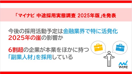 株式会社マイナビ(本社:東京都千代田区、代表取締役 社長執行役員:土屋芳明)は、2025年1~6月に中途採用業務を担当し、募集活動をしており、採用費用の管理・運用に携わっている人事担当者を対象に実施した「マイナビ 中途採用実態調査 2025年版」の結果を発表しました。