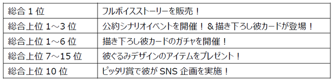 また、総合ランキング3位以内に入ったキャラクターにおいては、新規の描き下ろしイラストを含んだシナリオイベントを開催します。
