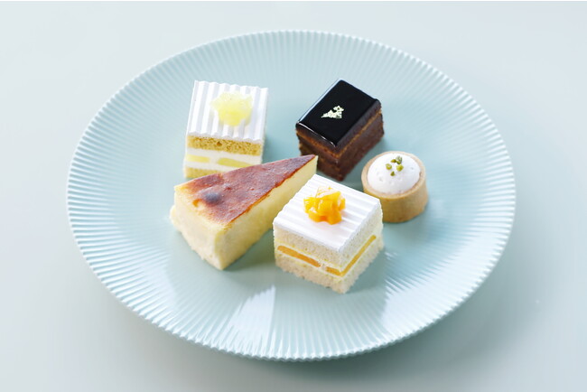 ホテル開業40周年を記念して登場した、シグネチャースイーツ「スーパーシリーズ」の中でも特に人気の「スーパーメロンショートケーキ」。糖度14度以上のマスクメロンを使用した、とろけるような食感が魅力です。館内のペストリーショップ「パティスリーSATSUKI」で1ピース¥1,800以上で販売されているこのケーキを、ミニサイズでお楽しみいただくことができます。