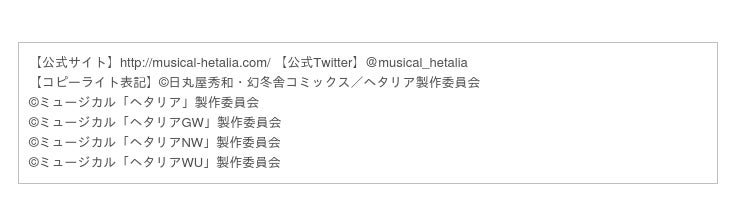 【発売元】ミュージカル「ヘタリア」製作委員会