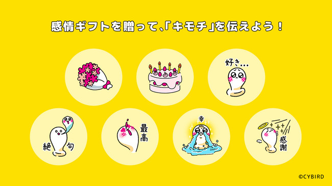 「感情ギフト」とは、贈る時の気持ちに合わせて選び、その金額をキャラクターや原作者に贈ることが出来るバーチャルアイテムです。「感情ギフト」には無料のものもございます。