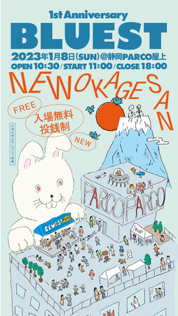 静岡PARCOは2023年1月8日(日)にOPEN FACTORY BLUEST開店1周年を記念した「おかげさんで1周年! NEW OKAGESAN」を静岡PARCO屋上で開催いたします。