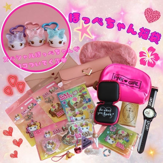 ◇平成レトロな〈サン宝石〉ほっぺちゃん福袋内容:スペシャルほっぺちゃん、「ギャルほっぺちゃん雑貨」含むサン宝石人気商品10点