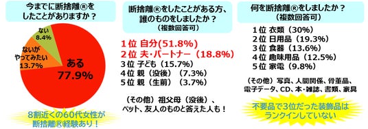 ファッション雑誌販売部数トップシェア(※)の株式会社宝島社(本社:東京都千代田区、代表取締役社長:関川誠)が発行する日本初の60代女性向けファッション誌『素敵なあの人』は、読者131人を対象に、60代女性の「断捨離(R)事情」についてアンケートを実施しました。