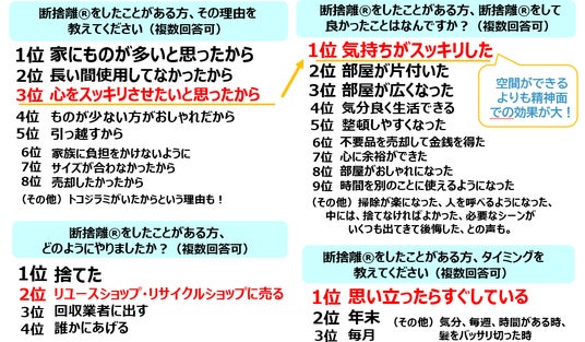 ★断捨離(R)をしてよかったことの1位は「気持ちがスッキリした」との結果に