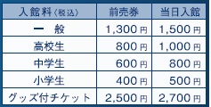 ※9月5日(月)以降の一般入場券は9月4日(日)までが前売料金、9月5日(月)以降は当日料金となります。