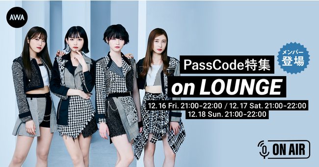 AWA株式会社(本社:東京都港区、代表取締役CEO:冨樫晃己)が運営する、サブスクリプション型(定額制)音楽ストリーミングサービス「AWA(アワ)」は、2022年12月16日(金) 21:00~22:00、12月17日(土) 21:00~22:00、12月18日(日) 21:00~22:00のそれぞれ3日間、無料で誰でも参加できるオンライン空間「ラウンジ」で、PassCodeのメンバーが、音声とチャットで参加する、AWAラウンジを開催いたします。