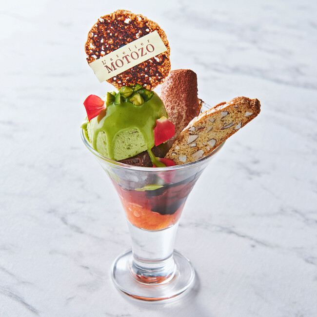 イタリア調理師連盟に所属する数少ないパスティッチェリア。世界のトップパティシエが称賛するイタリアのナッツやブラッドオレンジ、エスプレッソを巧みに使い、ジェラートをはじめ、セミフレッドやトルタ・ビスコッティを贅沢なパフェ仕立てにしました。