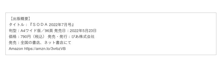 写真集のような見応えたっぷりなグラビア写真に、独自の切り口で話を伺ったインタビューは読み応えたっぷり!『SODA 2022年7月号』をぜひご覧ください!