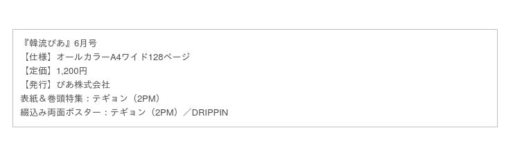 『韓流ぴあ』+ テギョン(2PM) 2L判生写真(1枚)+ポストカード 定価:1,200円(本体1,091円+税)