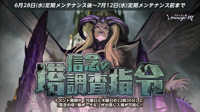 PCオンラインRPG「リネージュ」のモバイル版タイトル『Lineage M(以下、リネージュM)』のサービス、運営をしているエヌ・シー・ジャパン株式会社(東京都港区、代表取締役:金 澤憲(キム テクホン) 以下、エヌシージャパン)は、2023年6月28日(水)に「信念の塔攻略指令」、「一般ダンジョン入場時間延長」を含むイベント3種の開催、および「夏の補給パッケージ」を含む新たなパッケージの登場をお知らせします。