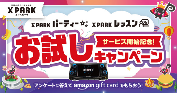 さらに、お試しキャンペーンでは、これらのサービスを体験した後にアンケートに答えてくれた方の中から抽選で総勢500名様に1,000円分のAmazonギフトカード(コードタイプ)をプレゼントいたします。この機会をお見逃しなく、「X PARK」でカラオケの常識を超えた新体験をご体感ください!