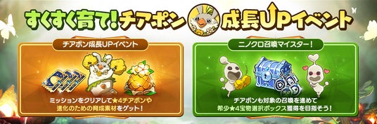 さらに新レイドでの活躍が期待できる光属性のサポート型の新イマージェン「チアポン」が登場します。また「チアポン」の獲得から覚醒、究極進化、超越覚醒と即戦力として活躍できるように育成を支援するイベントも開催しております。こちらも是非チェックしてください。