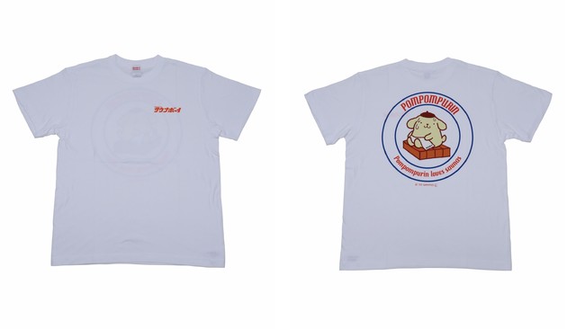 フロントは左胸にブランドロゴをオン。バックにはサウナを楽しむ可愛らしい「ポムポムプリン」をプリントしたインパクト大のTシャツが登場。柔らかな肌触りのコットン素材はさらっと着ていただけて、今の時期にもぴったりの1枚です。