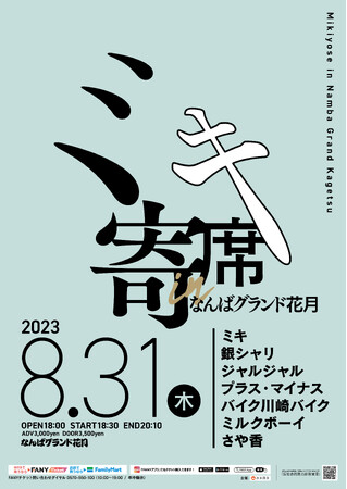 この度、 2023年8月31日(木)に、大阪・なんばグランド花月にて、ミキ主催イベント「ミキ寄席inなんばグランド花月」を開催いたします。